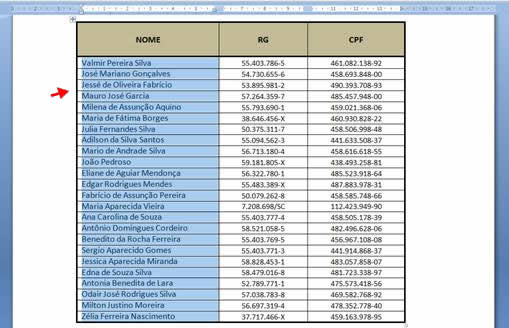 Classificar uma tabela é a melhor opção para organizá-la de maneira que o usuário final possam fazer uma boa leitura e ter melhor compreensão dos dados demonstrados na tabela. Observe na imagem abaixo onde temos uma tabela com uma relação nomes. Para organizar esta tabela vamos classificá-la em ordem alfabética.