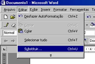 Para fazer a substituição automática clique no menu Editar e selecione a opção Substituir...ou aperte CTRL + Usimultaneamente.