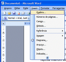 Em seguida, vá no menu Inserir / Quebra.