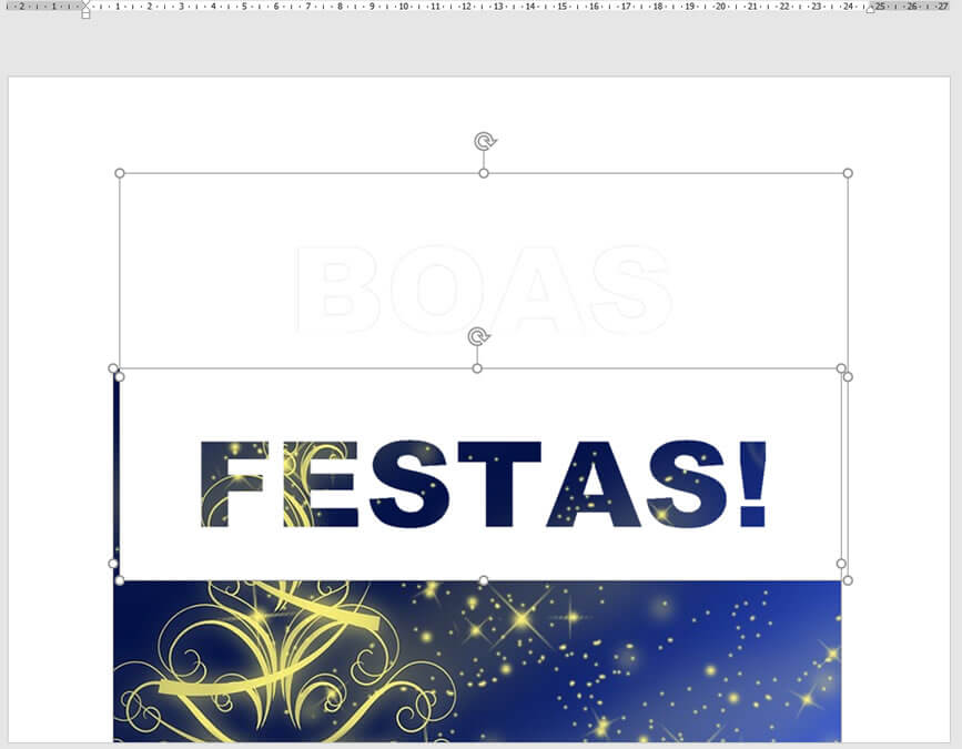 Agora vamos digitar um texto qualquer. Neste exemplo vou digitar em letras maiúsculas o texto “BOAS FESTAS!”, como mostra a imagem abaixo: