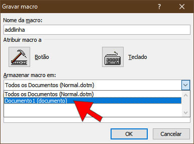 Ainda na caixa de diálogo Gravar Macro clique em Teclado. Em Armazenar macro em: deixe selecionada a primeira opção para que a macro possa ser usado em todos os documentos do Word.